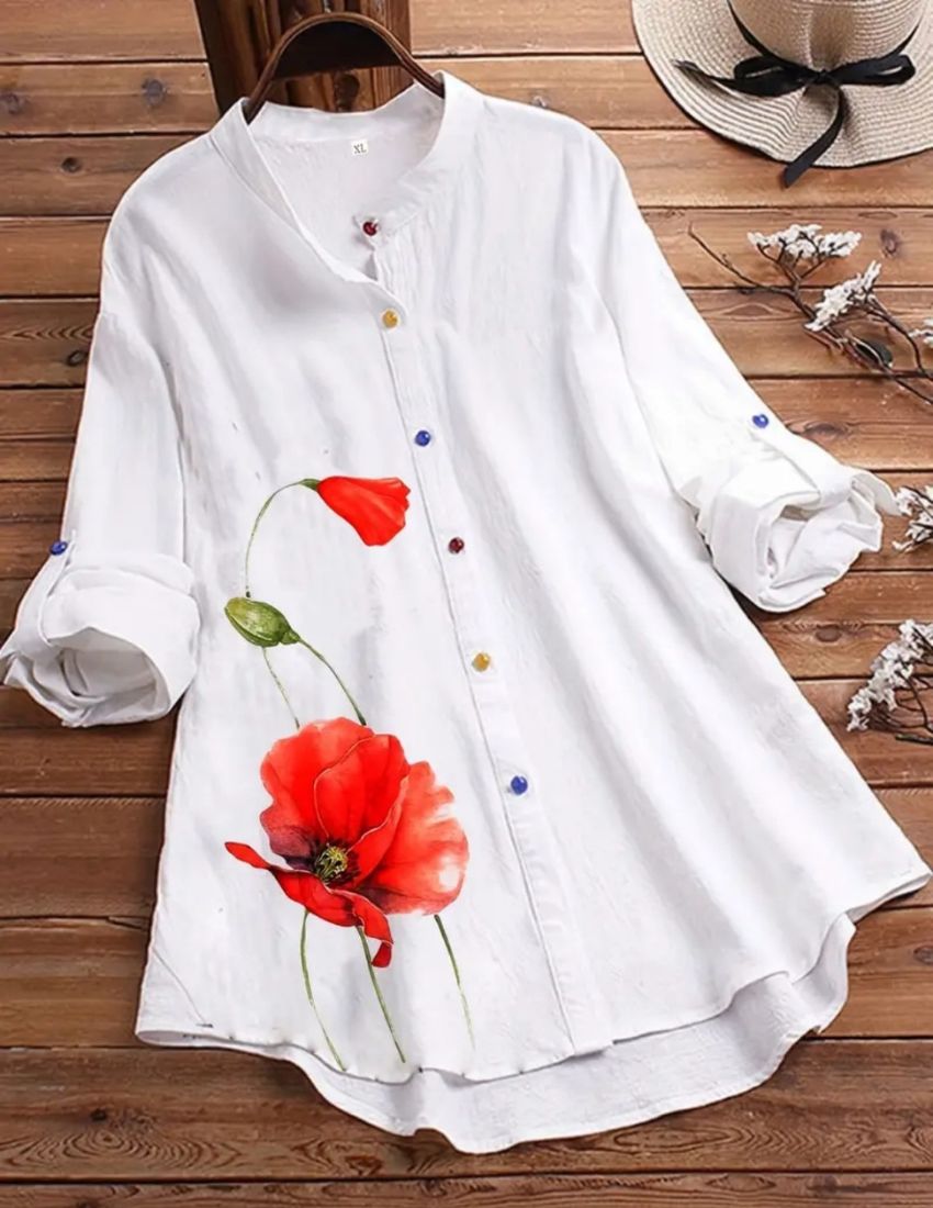 This top is a casual, elegant Top made from light and breathable rayon fabric, ideal for everyday wear or occasions. The floral print adds a feminine and artistic flair. he buttons are multicolored, adding a subtle playful touch to the shirt. The relaxed fit ensures comfort and versatility, suitable for pairing with jeans, trousers, or skirts.