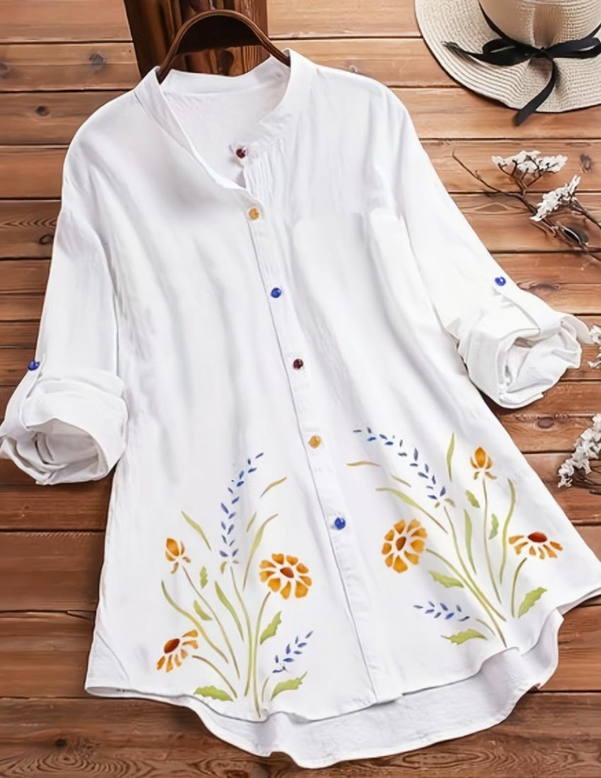This top is a casual, elegant Top made from light and breathable rayon fabric, ideal for everyday wear or occasions. The floral print adds a feminine and artistic flair. he buttons are multicolored, adding a subtle playful touch to the shirt. The relaxed fit ensures comfort and versatility, suitable for pairing with jeans, trousers, or skirts.